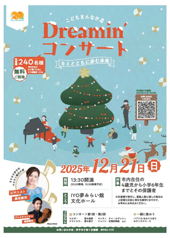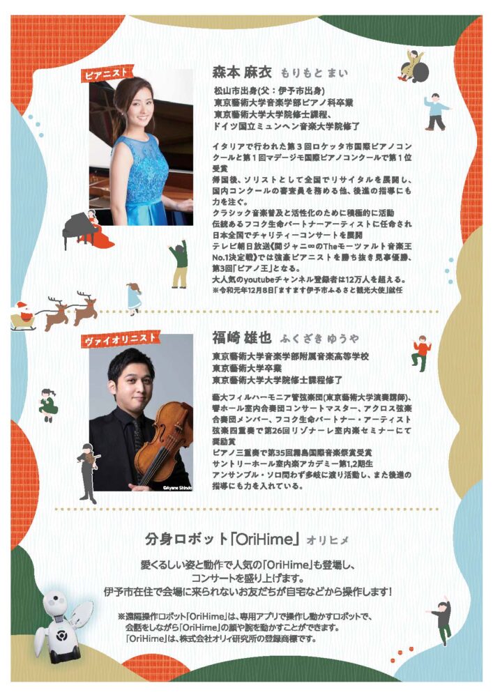 12月21日(日)、ますます伊予市ふるさと観光大使のピアニスト森本麻衣さんらによるコンサートを開催します。