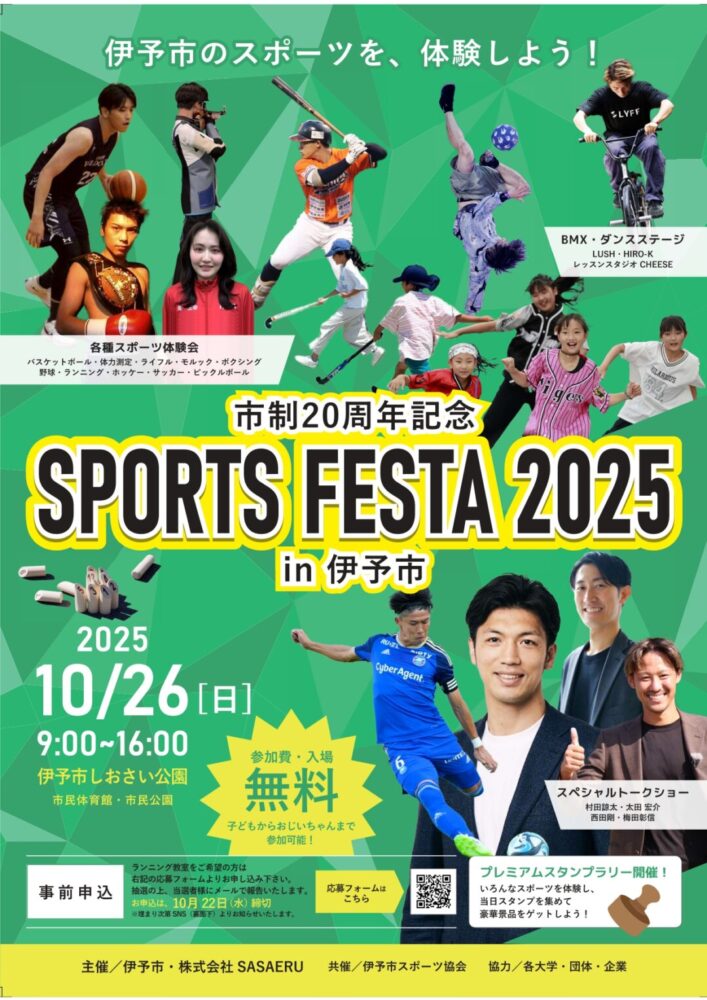 令和7年10月26日(日)、スポーツを始めるきっかけづくりを提供し、体力増進と健康意識の向上を図ることを目的にスポーツフェスタ2025が開催されます。