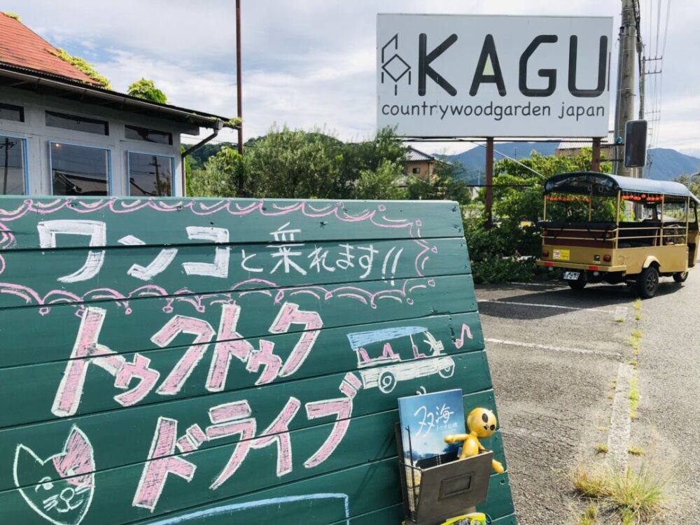 ▲愛犬と一緒にトゥクトゥクでドライブができる「ワンちゃん便」を企画。伊予市内のカフェ「GO★CAFE」で実施中!